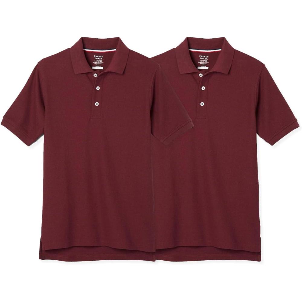 French Toast Boys’ 2-Pack Short Sleeve Pique Polo Shirt(Burgundy)