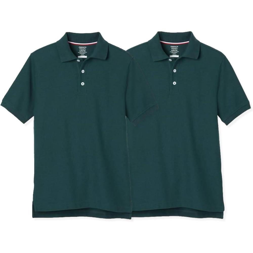 French Toast Boys’ 2-Pack Short Sleeve Pique Polo Shirt(Hunter Green)