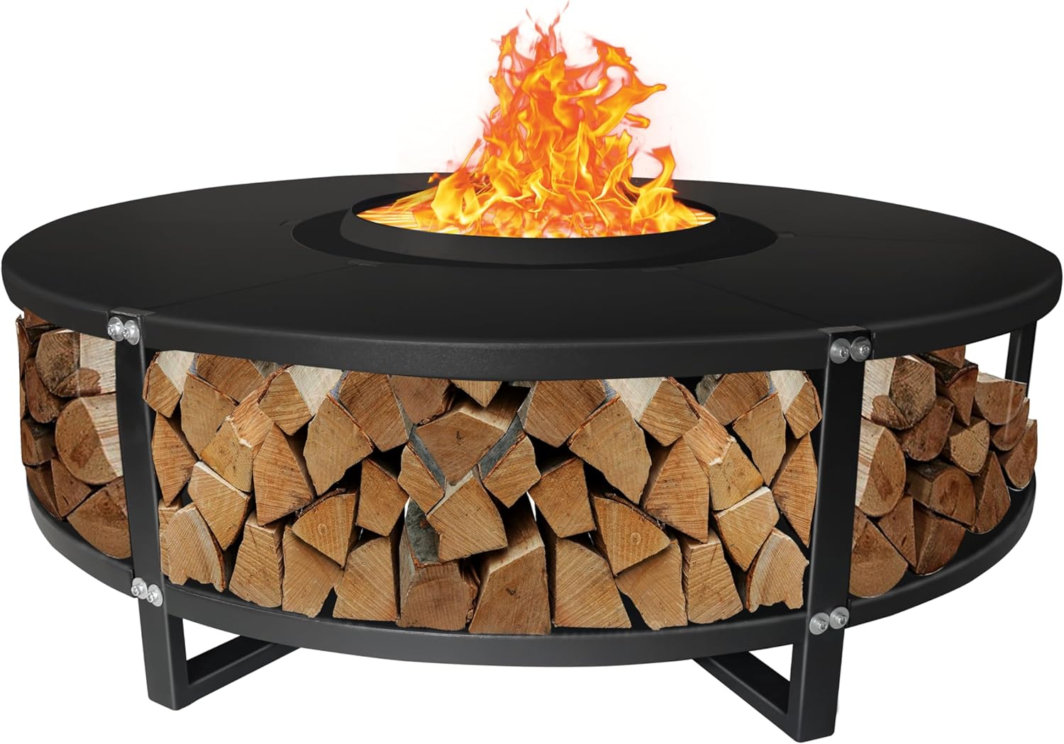 FEBTECH – Smokeless Fire Pit 21.6 Inch with Round Tabletop and Firewood Storage Shelf – Durable Carbon Steel Bonfire Fire Pit, Smokeless Fire Pits for Outside Gathering
