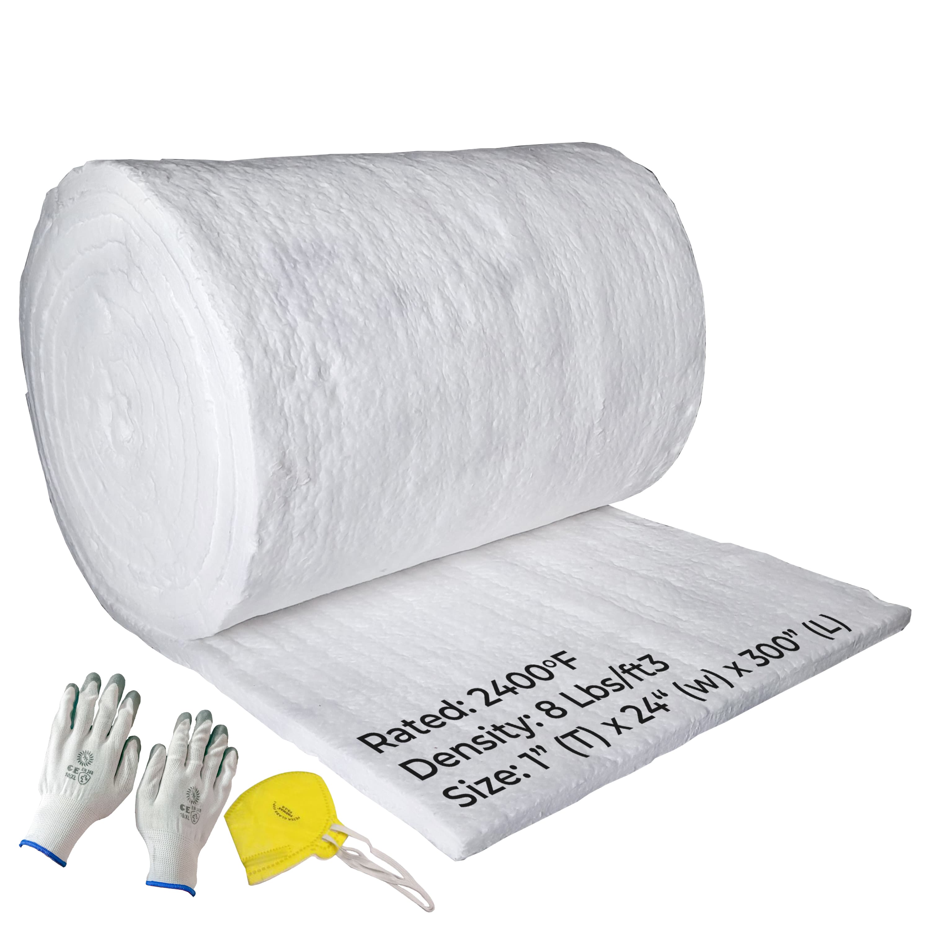 Ceramic Fiber Insulation Blanket Roll, 1″ x 24″ x 25′, 2400F 8# Density, Fireproof Insulation Blanket for Stove Forge Oven Foundry Furnace Chimney Fireplace Insulation, Dishwasher Insulation Blanket