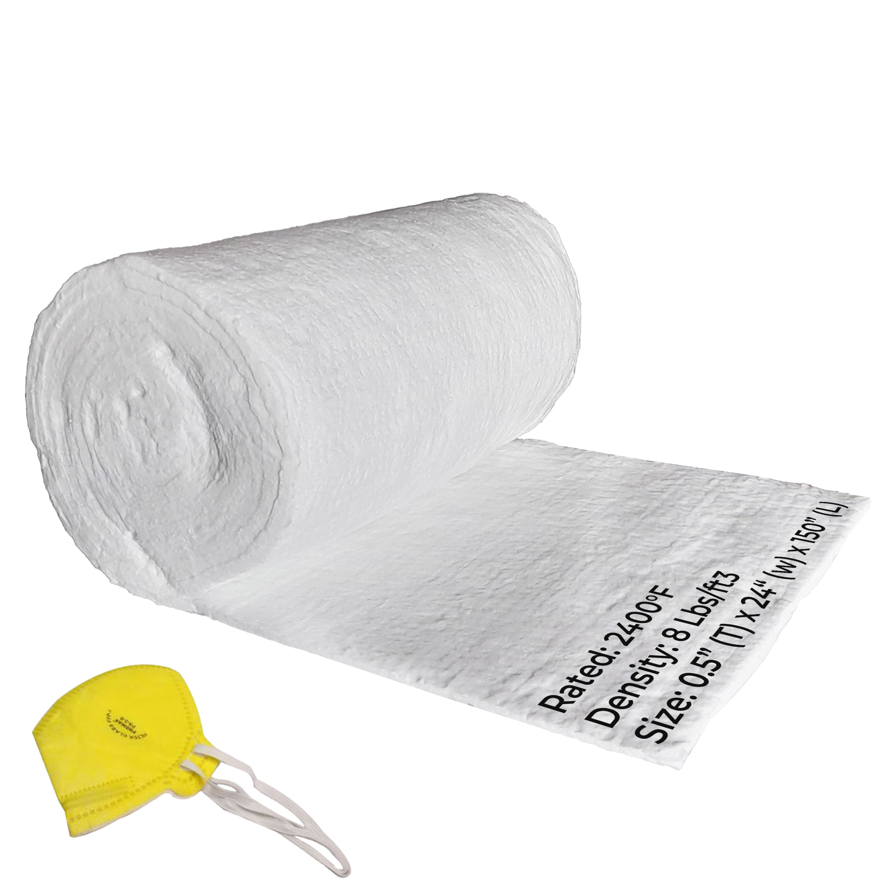 Ceramic Fiber Insulation Blanket, 1/2 inch X 24 inches X 150 inches, 8# Density 2400F, High Temperature Insulation for Furnace, Kiln, Forge, Stove, Pizza Oven, Fireplace Insulation