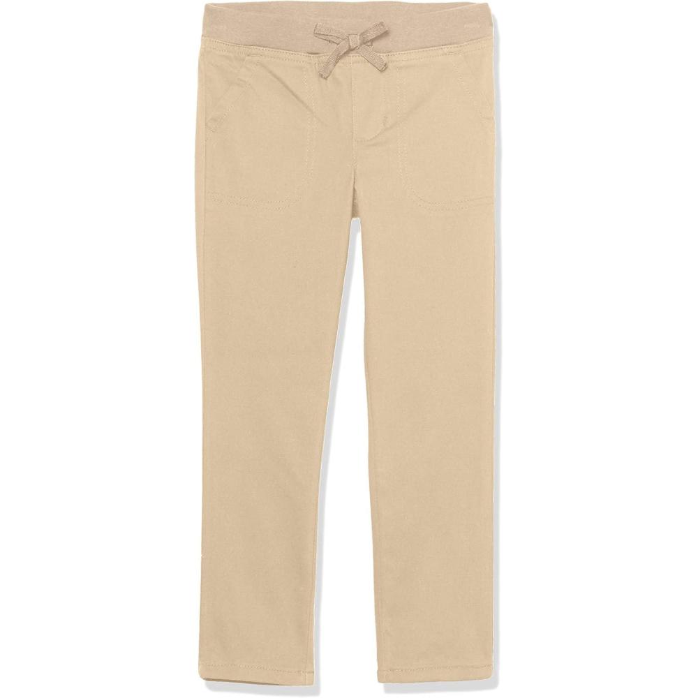 French Toast Girls Pull On Skinny Fit Stretch Pants with Elastic Waist and Pockets, School Uniform for Kids(Khaki)