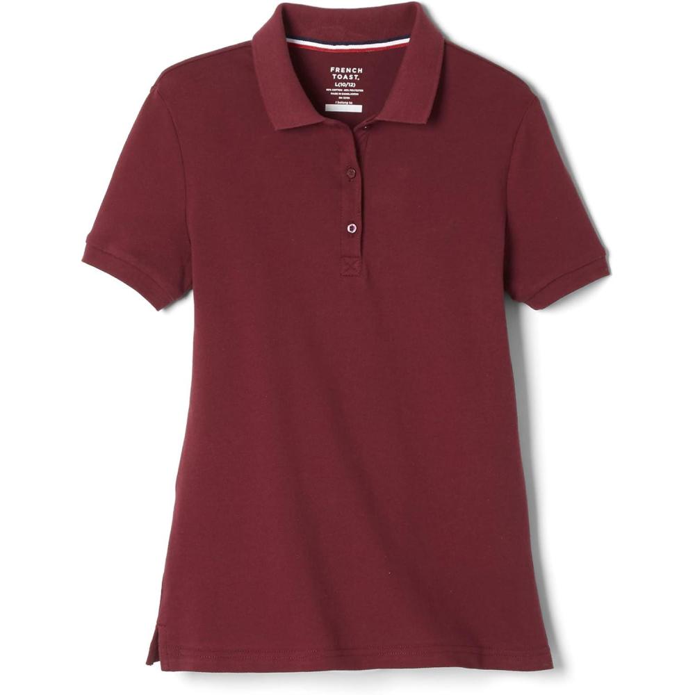 French Toast Women’s Cotton Blend Stretch Pique Short Sleeve Polo Shirt(Burgundy)