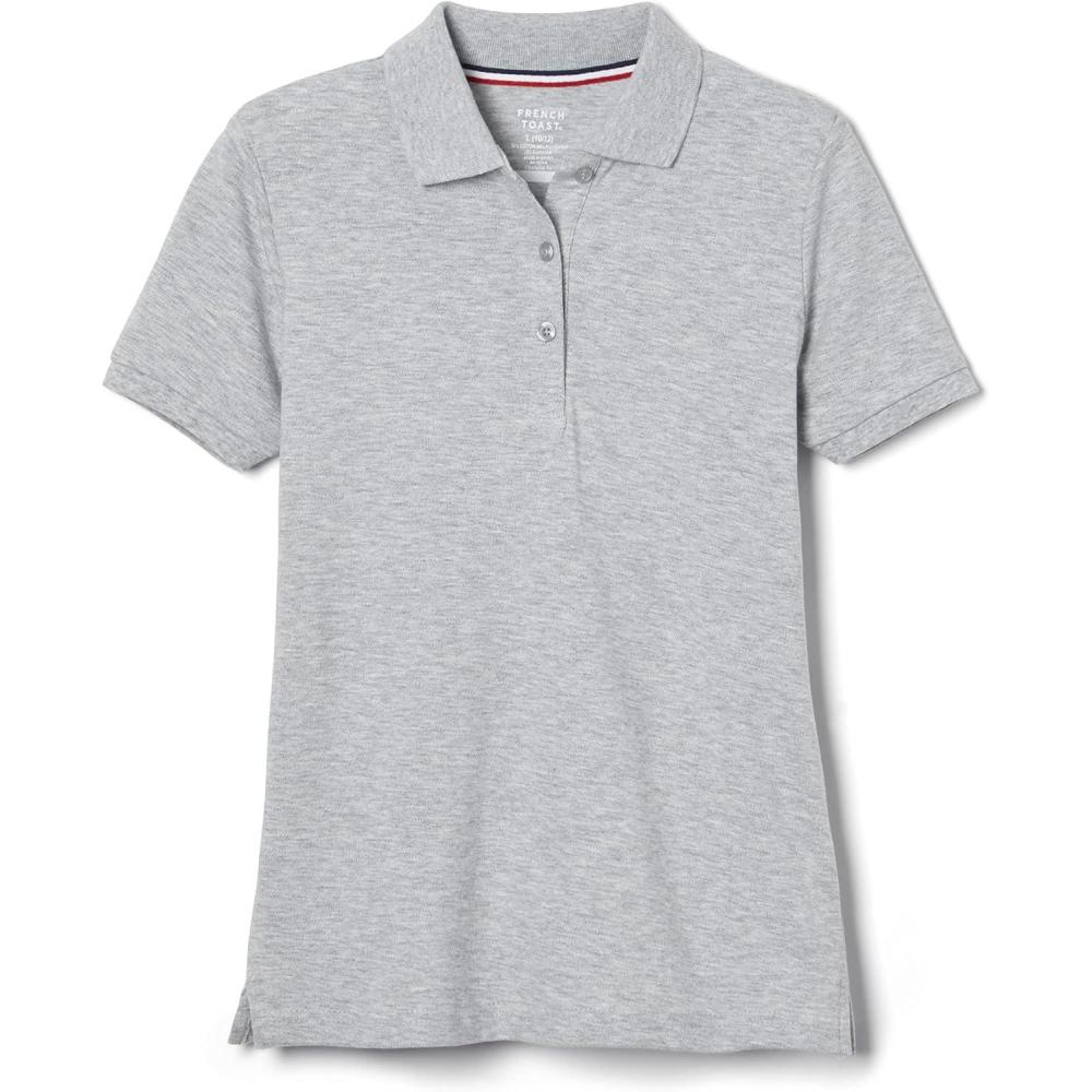 French Toast Women’s Cotton Blend Stretch Pique Short Sleeve Polo Shirt(Grey)
