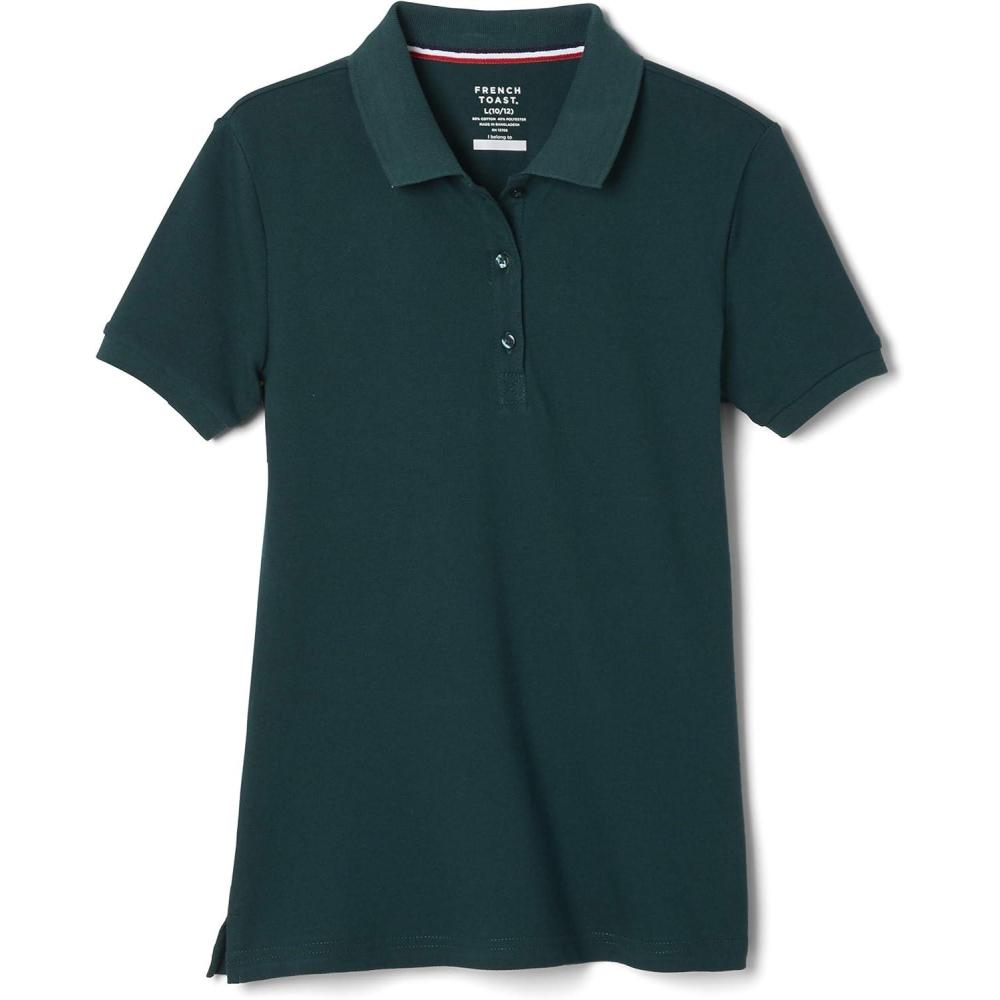 French Toast Women’s Cotton Blend Stretch Pique Short Sleeve Polo Shirt(Hunter Green)