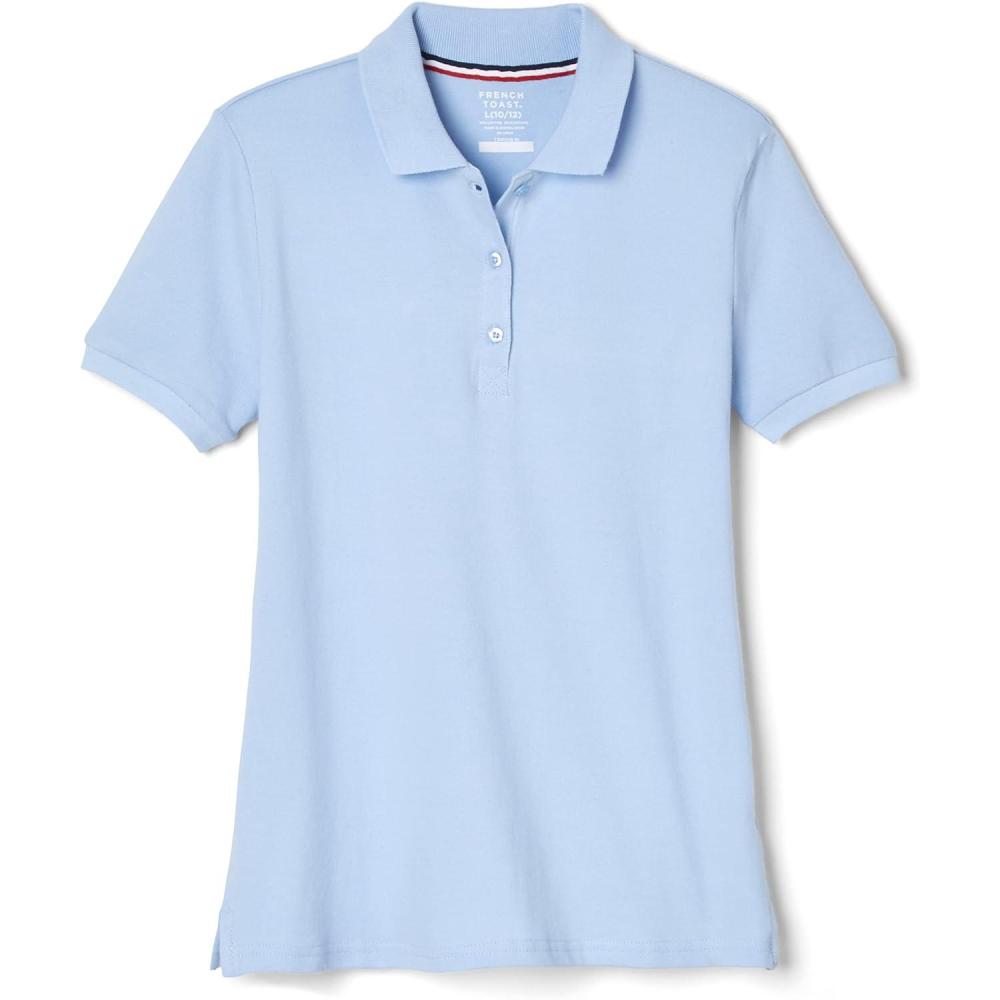 French Toast Women’s Cotton Blend Stretch Pique Short Sleeve Polo Shirt(Light Blue)