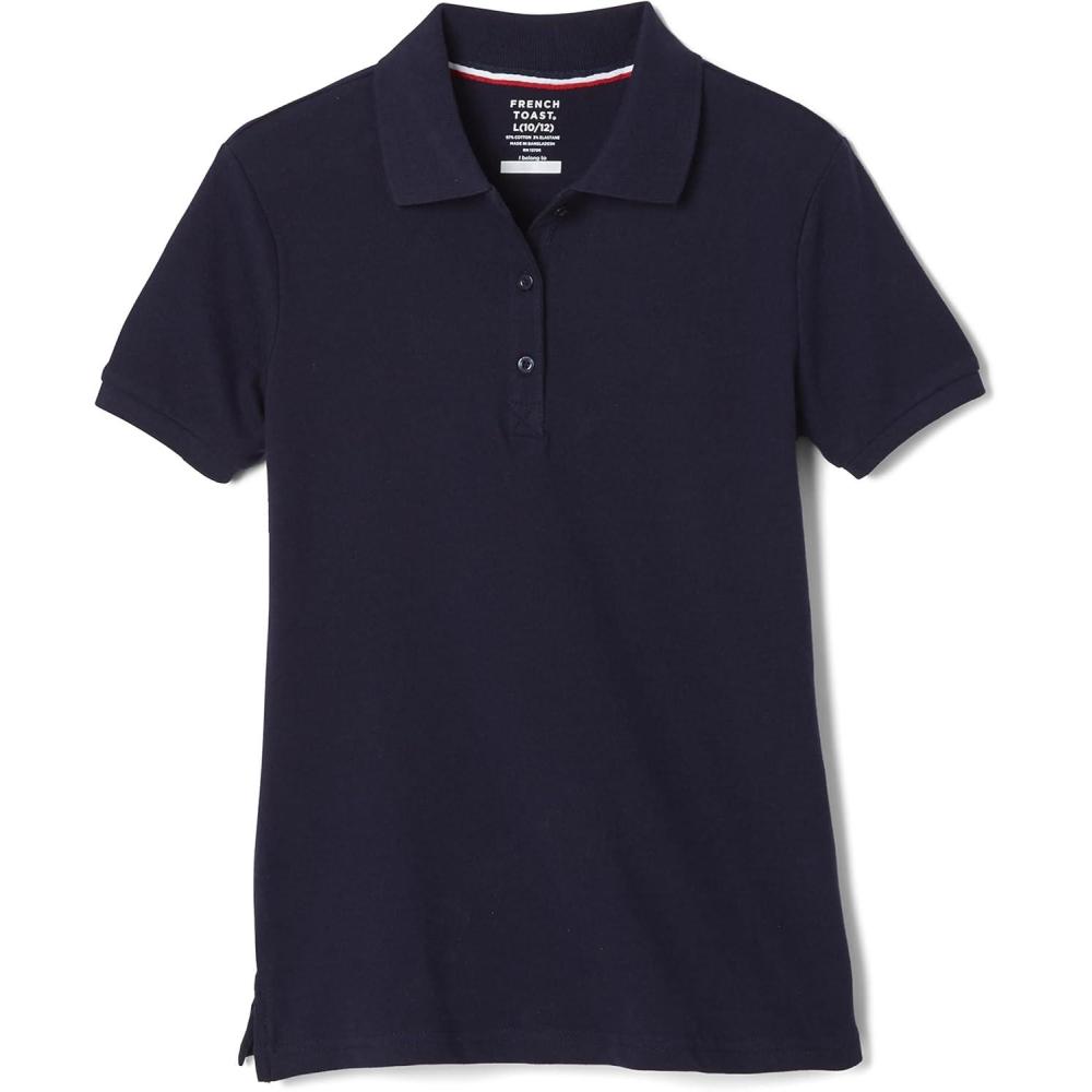 French Toast Women’s Cotton Blend Stretch Pique Short Sleeve Polo Shirt(Navy)