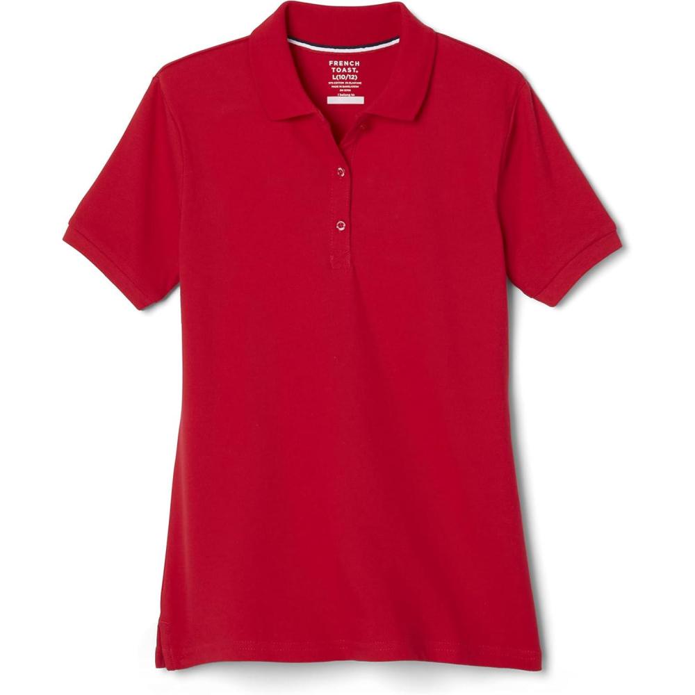 French Toast Women’s Cotton Blend Stretch Pique Short Sleeve Polo Shirt(Red)