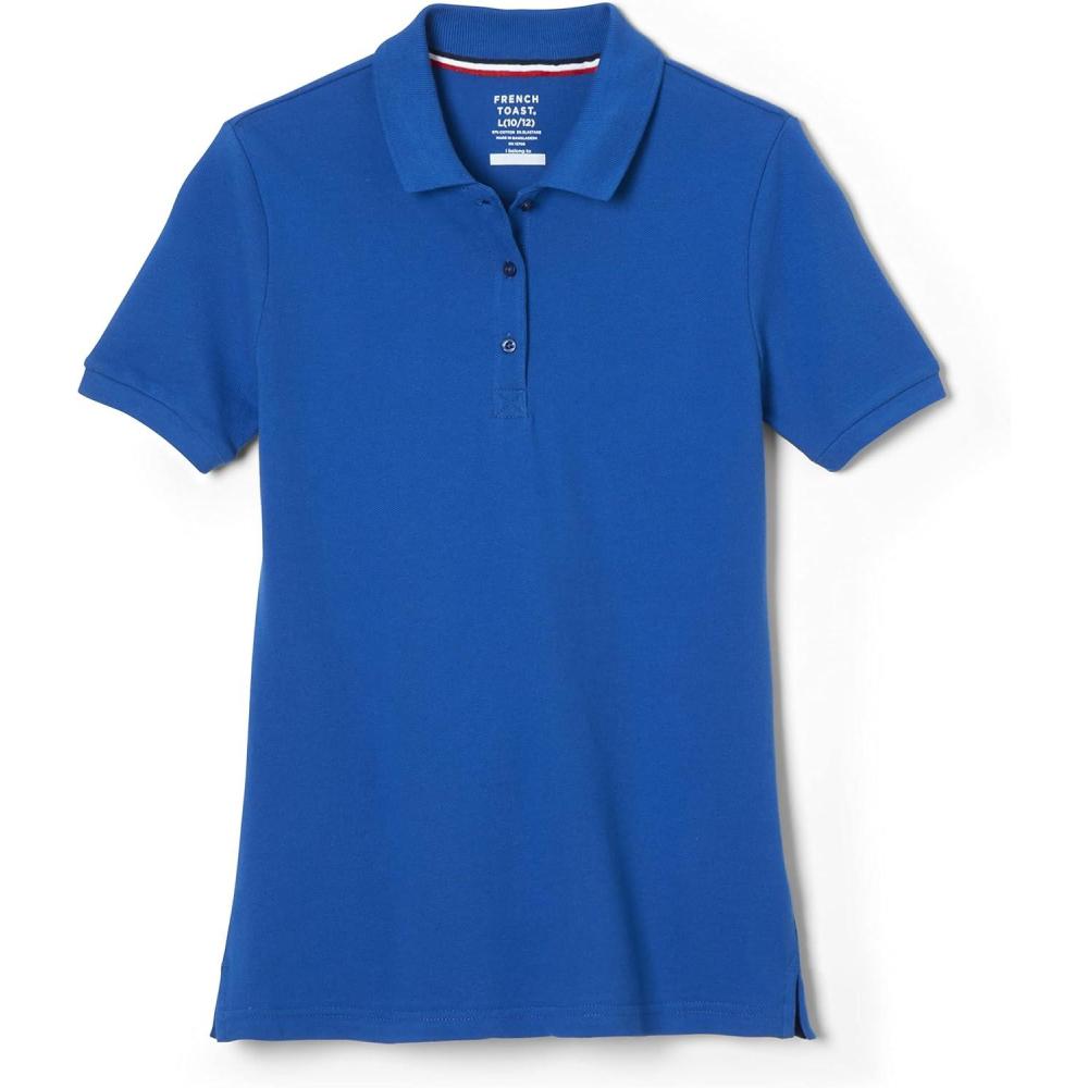 French Toast Women’s Cotton Blend Stretch Pique Short Sleeve Polo Shirt(Royal)