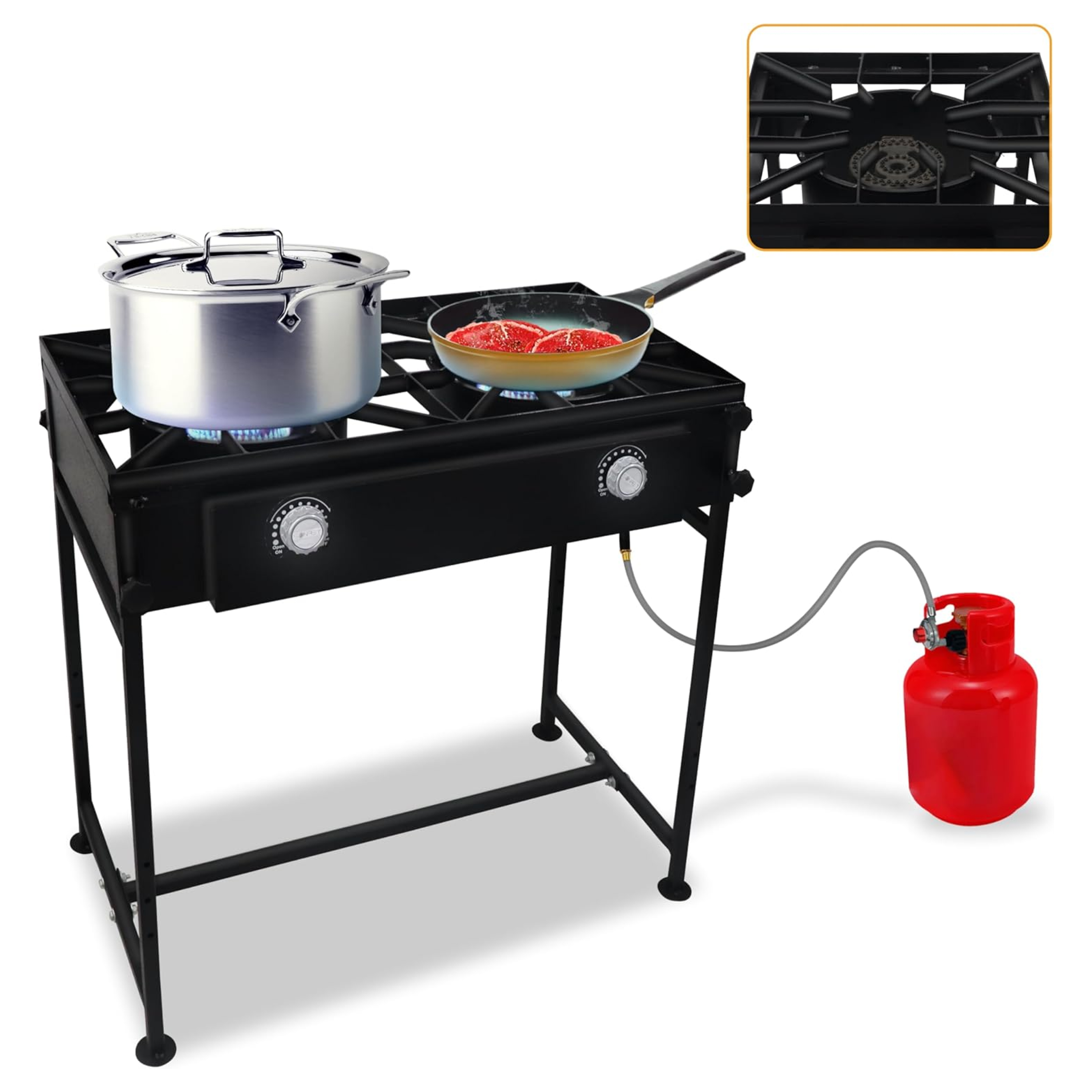 Double Burner Propane Stove outdoor – 1,50,000 High btu Propane Burner Camping stove W/Detachable legs – Steel 2 burner propane stove outdoor Gas stove – W/CSA-approved 0-20 PSI regulator & hose pipe