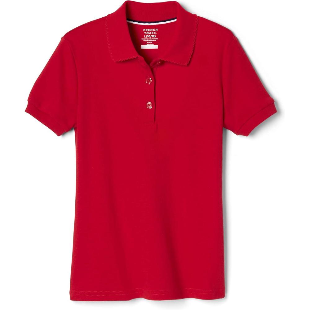 French Toast Girls’ Picot Collar Polo Short Sleeve Shirt (Kids Standard & Plus Size), Red, 18-20