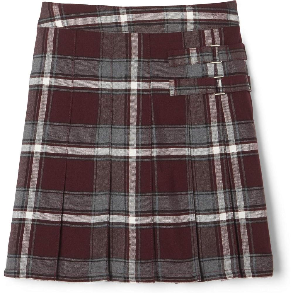 French Toast Girls’ Plaid Adjustable Waist Pleated-Front Two-tab Scooter(Burgundy Plaid)